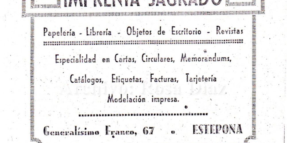 leer másEntre los años 1.941 y 1.942 vamos a recordar algunos de los comercios e industrias que de algún modo participaron con su publicidad en folletos y también en programas de feria. Relación de los Comercios de Estepona en la Historia. La maquetación e impresión de las publicidades de la época fue realizada por la imprenta […]