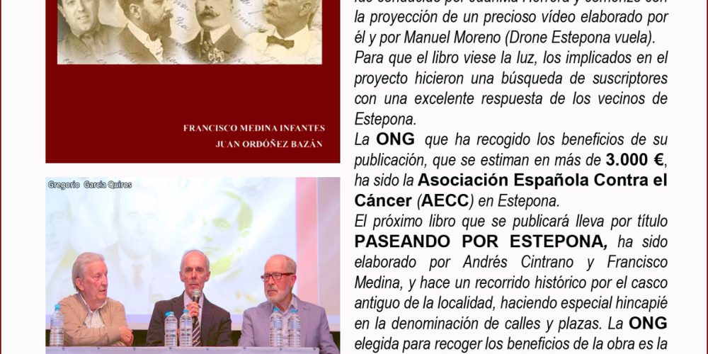 leer másCOLECCIÓN “HISTORIA DE ESTEPONA PARA LA SOLIDARIDAD». UNA VENTANA AL PASADO Libro de Estepona. Los esteponeros Andrés Cintrano, Francisco Medina y Juan Ordóñez han iniciado un proyecto solidario que consiste en la publicación de libros sobre la historia de Estepona, cuyos beneficios van íntegramente a ONGs de la localidad. En primer lugar comentar que el […]